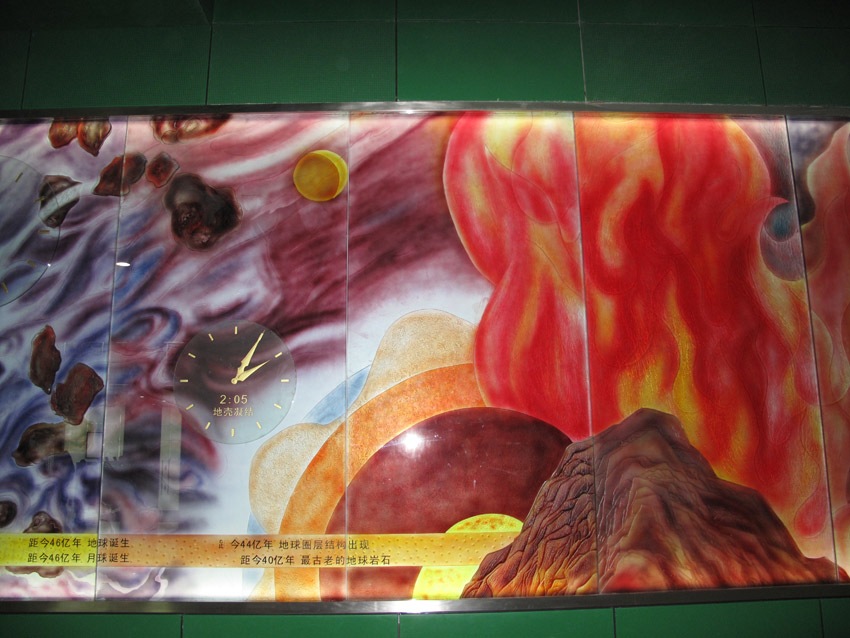 《生命历程》 科普壁画 设计:张松正 陈宗铭 郝彦杰 落成地点:中国科技馆 制作工艺:玻璃雕刻彩绘