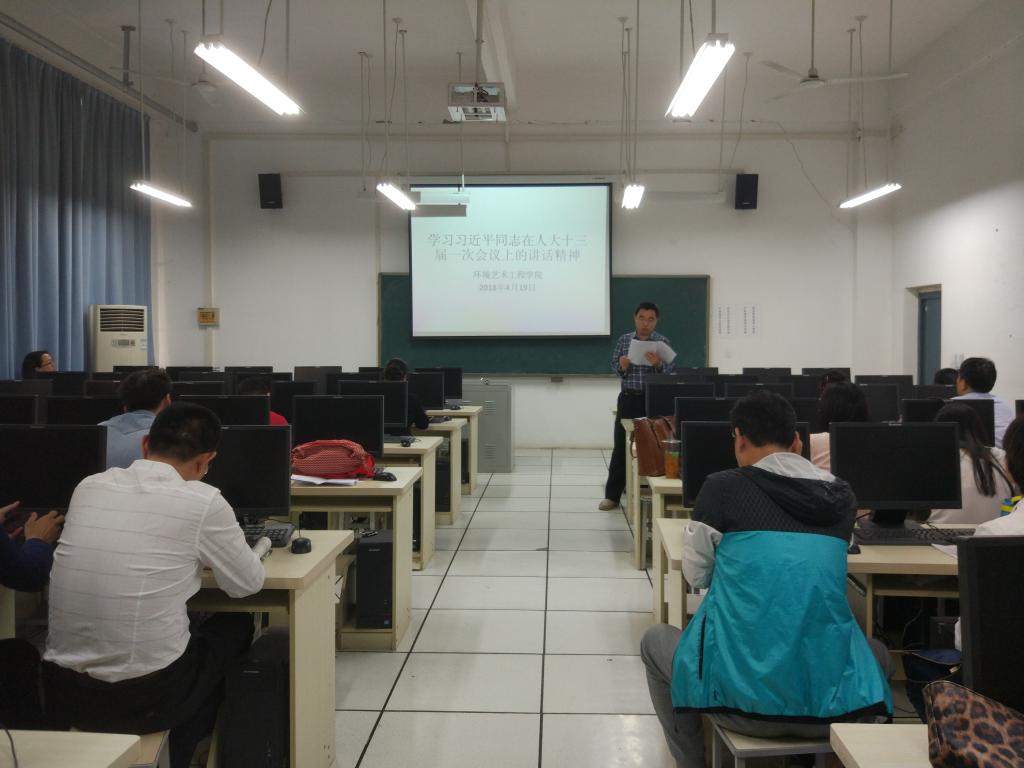 4月19日下午,环境艺术工程学院在电教楼109教室召开了学习“习近平同志在人大十三届一次会议上的讲话精神”。会议由院党总支书记王永主持,环境艺术工程学院领导班子及全体教职工参加了会议。